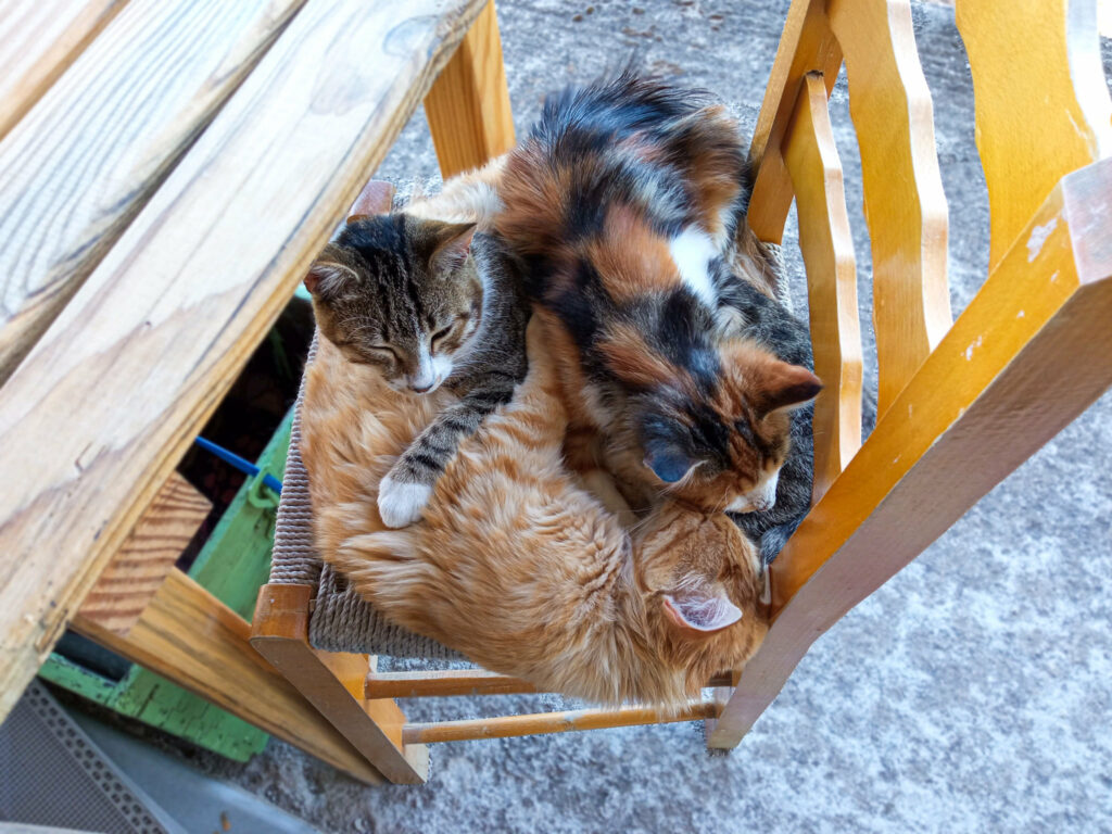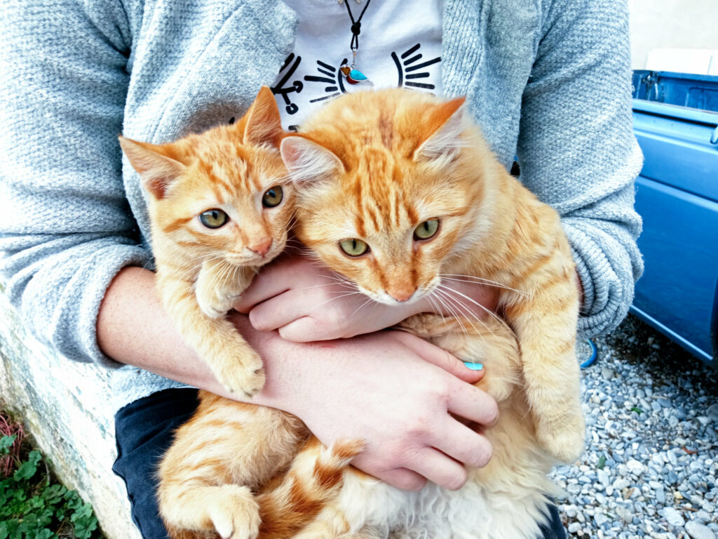 Kilka dni po tym jak Kiriak przyszedł na świat, jego mamusia szukała nowej kryjówki i zostawiła go samego na betonie. To była jesień, deszczowy dzień, więc kiedy go znaleźliśmy, był zmarznięty na kość. Jego mama pewnie oceniła, że jest martwy, więc nie zabrała go ze sobą. Ogrzaliśmy go w rękach przy piecu w stolarni i oddaliśmy kotce. Na szczęście nie został odrzucony. Został też ewakuowany na plażę podczas ogromnego pożaru na wyspie.