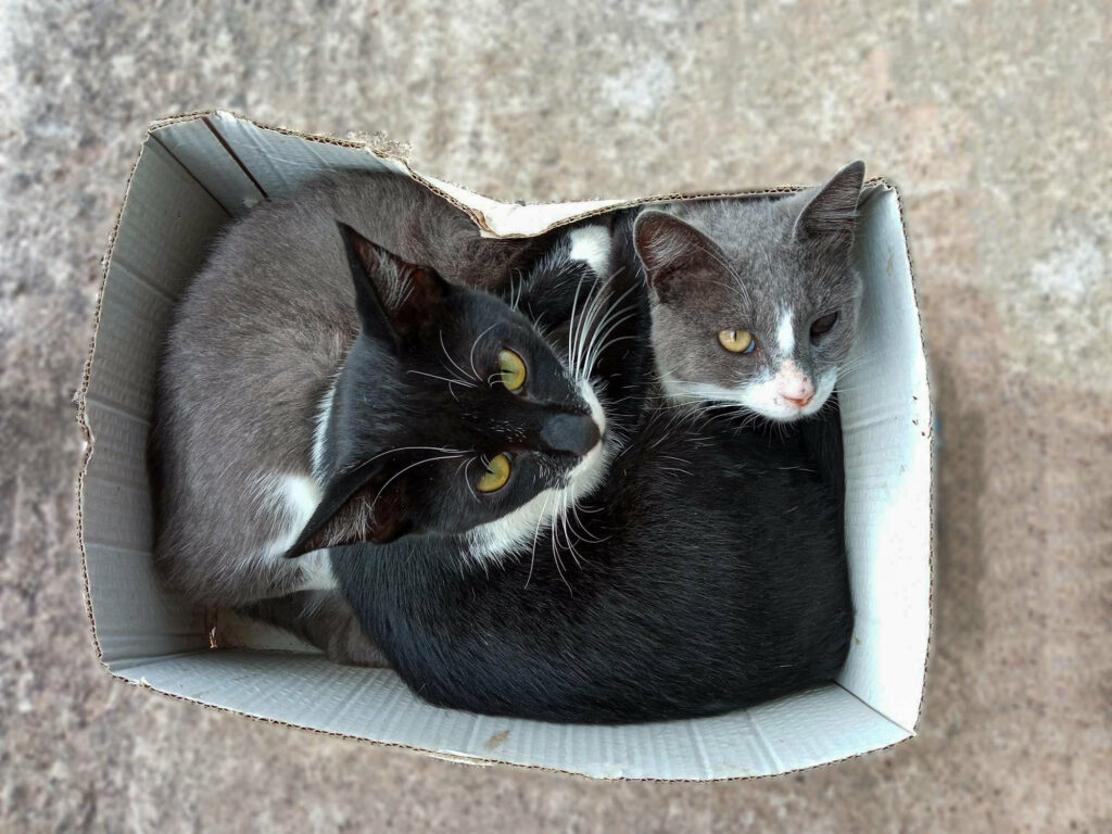 Mawro przyszedł do nas pierwszy raz w zimny, grudniowy dzień, kiedy miał ok. dwa miesiące. Był w towarzystwie Aspro, prawdopodobnie swojego brata. Obydwa koty panicznie bały się ludzi i obydwa wyglądały jak kocie szkielety pokryte kośćmi. Oswoiliśmy je za pomocą jedzenia i przenieśliśmy do warsztatu, gdzie nocowały całą zimę.