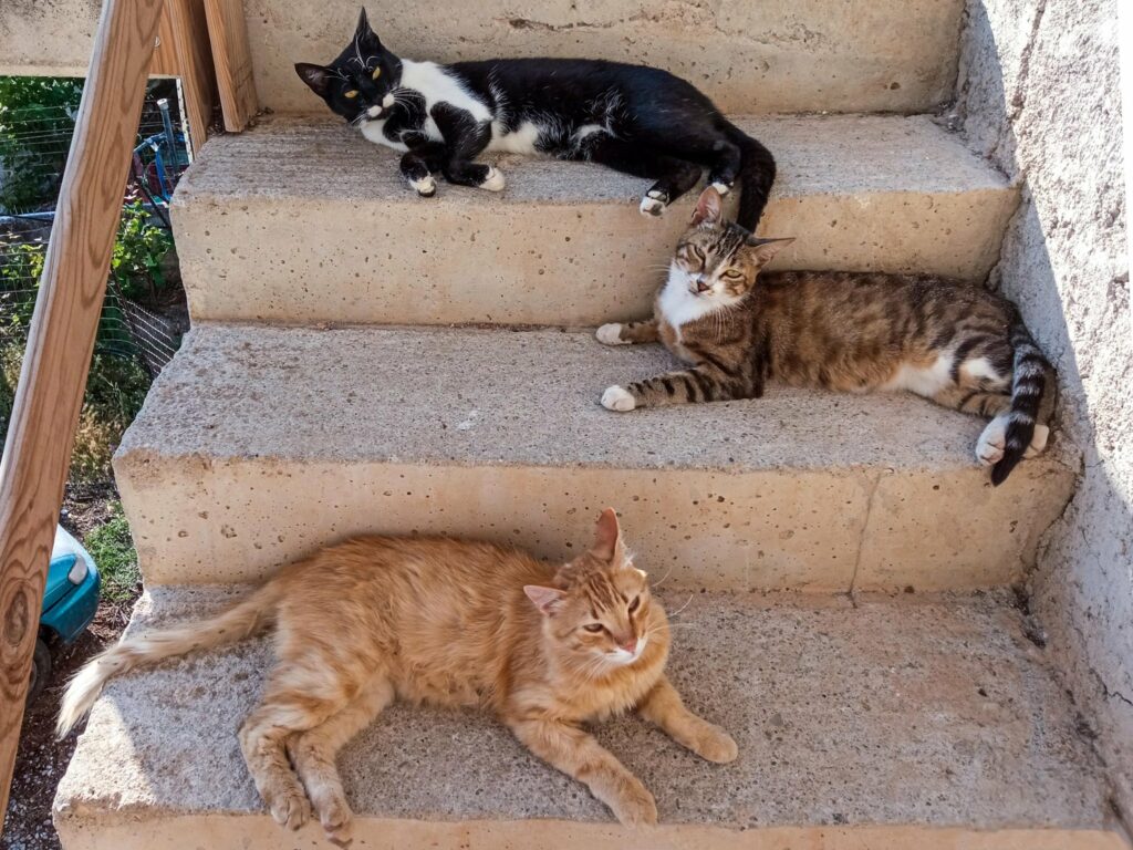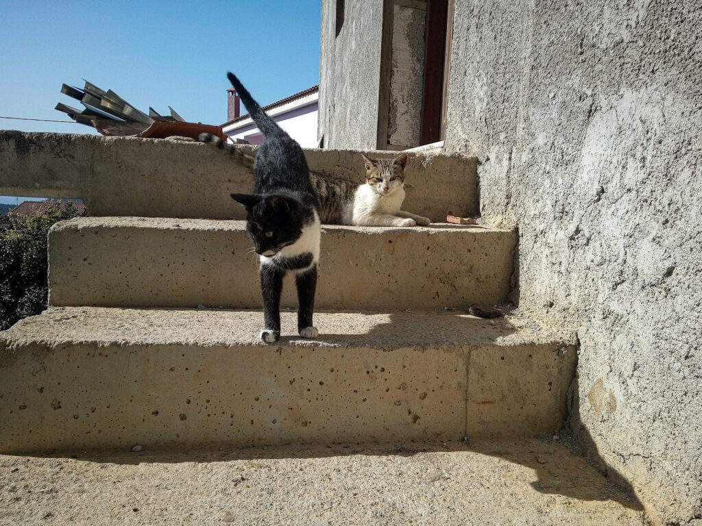 Aspro był łagodniejszy, ale bardziej nieśmiały. Za to chyba doświadczenie głodu bardziej go dotknęło: chociaż był regularnie karmiony, rzucał się na jedzenie jakbyśmy go głodzili. Potrafił wyjadać obierki z ogórków. Thanasis dwa razy wyciągnął go z dużego kosza na śmieci, bo zaklinował sobie głowę w puszce po psiej karmie. Któregoś dnia zniknął i nie wrócił. Podejrzewamy, że zakradł się do misek psów myśliwskich, bo kilka miesięcy potem sąsiad przenosił psy i przypadkiem znalazł w okolicach budy koci szkielet. I to był pierwszy cios dla Mawro. To co się z nim działo po zaginięciu Aspro, łamało serce. Przez kilka dni chodził wokół domu i warsztatu Thanasisa, jakby szukał brata i przerażająco miałczał. Nigdy jeszcze czegoś takiego nie widzieliśmy. Po tym zdarzeniu Mawro zaczął też bardzo garnąć się do nas. Prosił o dotyk, głaskanie. Ciągle próbował wchodzić do domu.