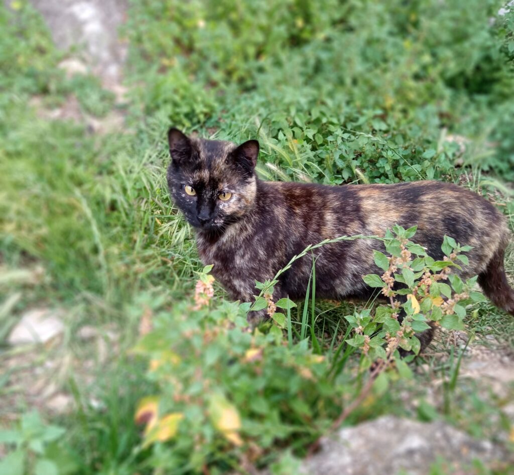 A potem nagle, z dnia na dzień, z lękliwej i nieśmiałej koteczki, zaczęła wychodzić z niej wesoła kotka. Taka, która bawi się z innymi kociakami i łapie liście. A po kilku miesiącach stała się naczelnym kocim pieszczochem, który nie tylko pozwala się głaskać. Ona się o to głaskanie prosi! Ociera się o nogi, delikatnie podgryza ząbkami, zachęcając do zabawy. Kiedy Thanasis ewakuował koty na plażę podczas pożaru, bez problemu pozwoliła mu się złapać. Spokojnie zniosła podróż samochodem. A potem równie spokojnie czekała na niego na plaży, aż przyszedł i zabrał ją z powrotem na wieś.